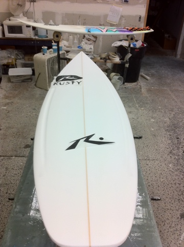 I headed up to the Rusty factory to(unfortunately) return that 5’7″ BS single fin today. However, I did get to order some boards! First I ordered a 5’6″ dozer. I’m working with Pedro Battaglin on this board. We have made two of these now and this will be the third one. On this board I’m going to decrease the tail block width a little bit and change the bottom contour from a deep single throughout to a slight single with V in the tail. I think these little adjustments will make this board mental. Next I wanted a replica of my 5’6″ “team” hustler with the squash tail. So on this one I simply gave Hamon my old board number and said please. Last I ordered one of the newer models in the lineup, a Misfit. I’m still wondering what the hell I ordered on this one lol. I was lucky enough to see World Tour Surfer and old amigo Nate Yeomans there today and he was bringing one back that he said was too thin in the tail. Also there was another Rusty shredder Nick Grenier who said he has one also and the tail is too thin. So….I obviously told Hamon that I’d like one with a thicker tail. Then came the……”uh, well you see…if we do that it will really change that bottom rocker line”. Now here’s one thing I’ve learned. Mr. Rick Hamon knows what the hell he’s talking about, and when he has pause for concern over design like this…….LET HIM DO WHAT WILL WORK, not what you want!! So seeing as he knew the issue I left it simply at make me a 5’9″ misftit 2.25-2.35″ thick. So that is definitely going to be the most interesting one to see how it comes out as well as rides. So after flapping with everybody for much too long I headed back home. I checked the waves and it sucked but it was so hot and muggy I surfed scripps for an hour in trunks anyway. Because I remember all those days in New Hampshire that I would have given anything for a day like today. Here’s some random pics from throughout the day. I forgot to TMZ Nate and Rusty for you guys, so sorry but no paparazzi shots of them.