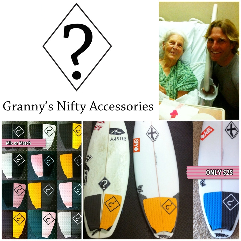 The site is up and running so I would like to officially introduce Granny’s Nifty Accessories. High quality, low cost, surf accessories inspired by my grandmothers. $25 traction…why not!? Because nobody loves you like granny.